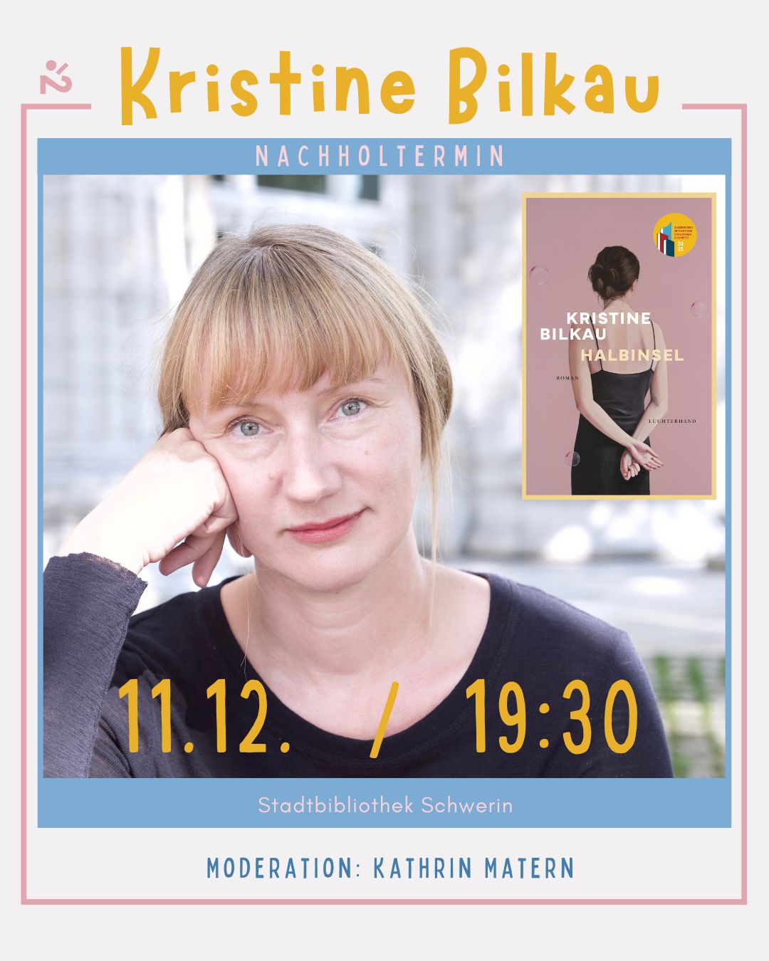 Für die krankheitsbedingt ausgefallene Lesung mit Kristine Bilkau ist ein Ersatztermin gefunden: